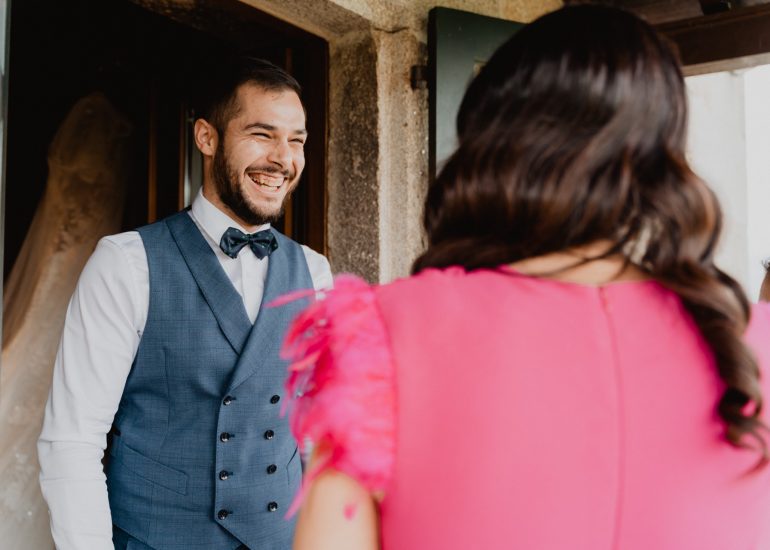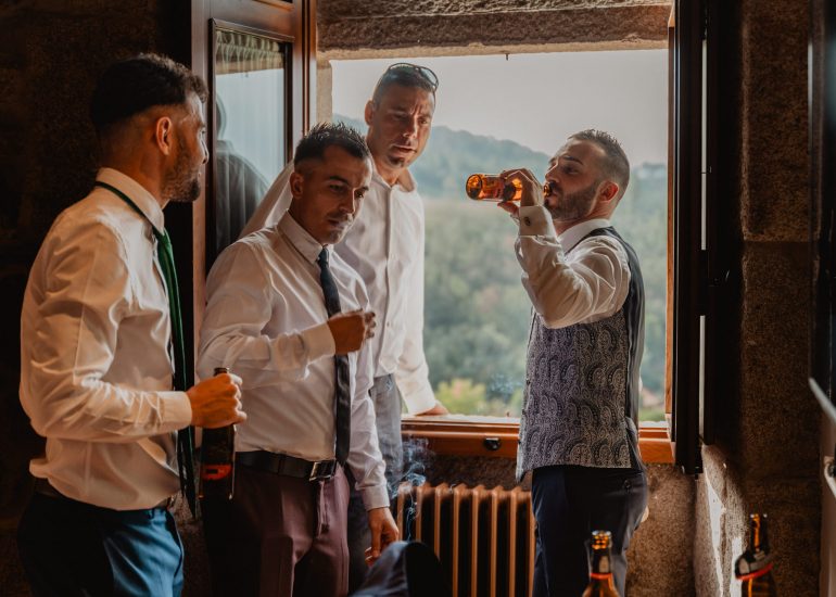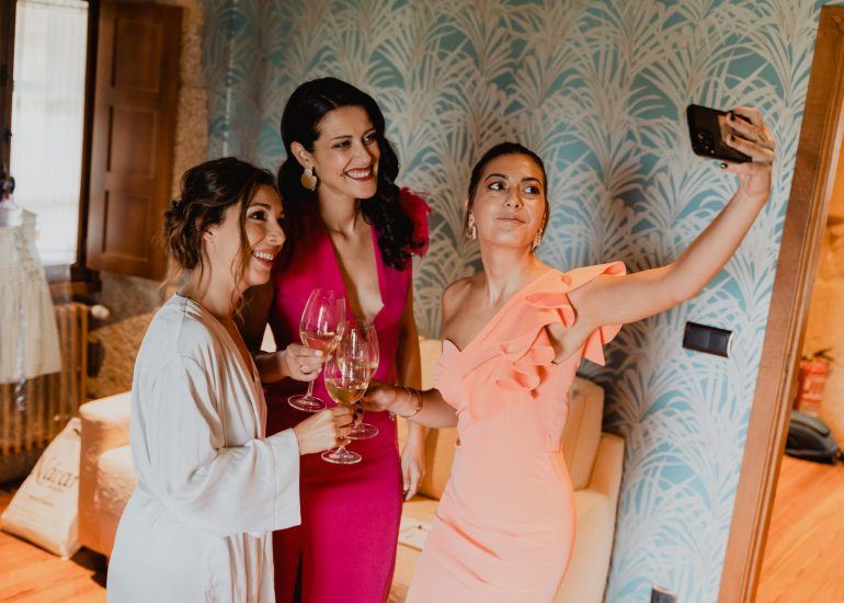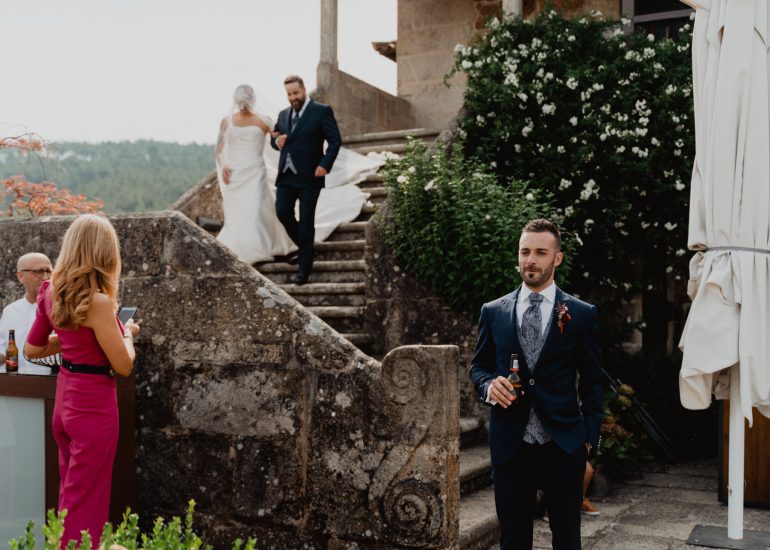 Hacer un reportaje de boda en un Pazo como Casal de Arman es siempre un gustazo. Es fácil entender que con un escenario como este todas las imágenes de tu boda lucirán mejor. Unas habitaciones amplias con luz natural son el lugar idóneo para hacer las fotos de los preparativos. El salón enorme con ventanales y balcones dan mucho juego y no hablemos de la galería o del balcón principal de madera en forma de L que ocupa toda la fachada. Luego siempre están los viñedos, que harán de tu reportaje de boda un sueño hecho realidad. Ademas al estar en un lugar tan aislado el uso de drones esta permitido y eso siempre añade una pizca de novedad al reportaje.